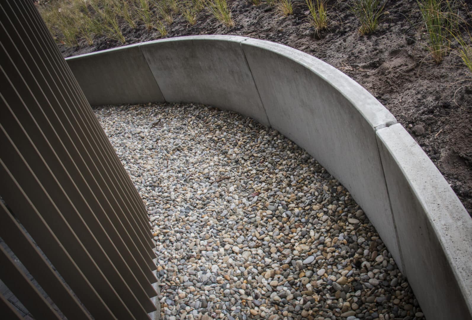Voor een woning in Barneveld zette Aannemingsbedrijf F. van de Stroet onze keerwanden in als erfafscheiding aan een drukke weg.