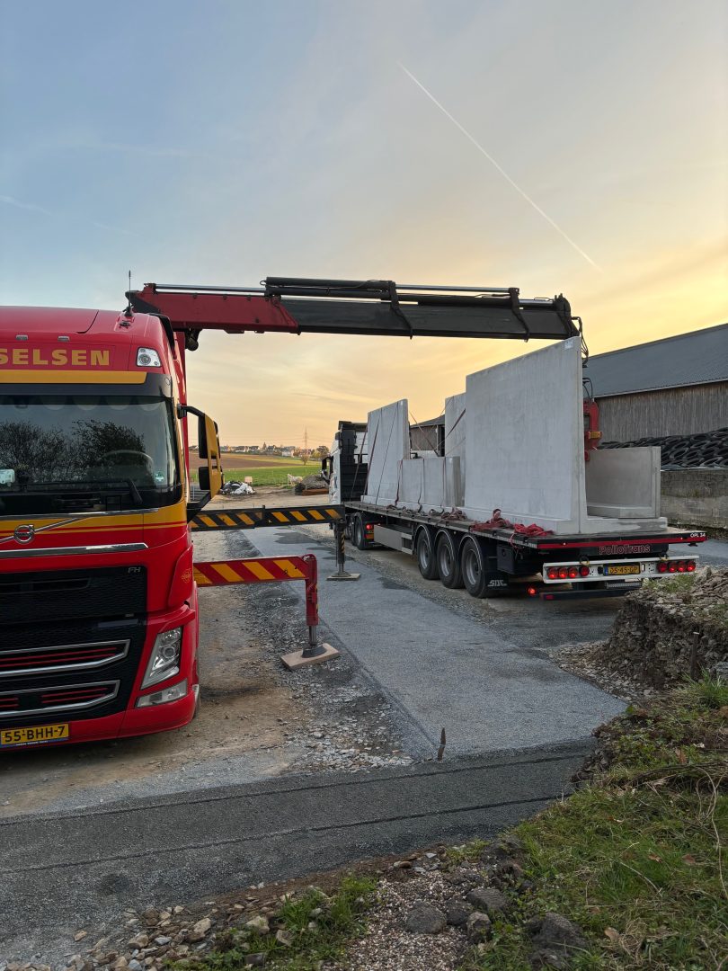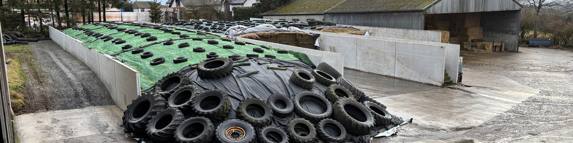 Om de bestaande ruwvoeropslag te vervangen is de familie in contact gekomen met Bosch Beton. Door het uitgebreide assortiment en de adviezen van onze verkoopadviseur hebben ze hun sleufsilo’s precies zo kunnen installeren als ze zich hadden voorgesteld. Uiteindelijk zijn de sleufsilo’s in twee fasen gerealiseerd waarbij gebruik gemaakt is van 250 cm hoge keerwandelementen en U-wanden met een trap in het midden. Hiermee zijn twee silo’s van 36 meter en een silo van 40 meter verwezenlijkt, wat past binnen de bredere strategische investering die de familie voorbereidt op de geleidelijke overgang naar de vijfde generatie.