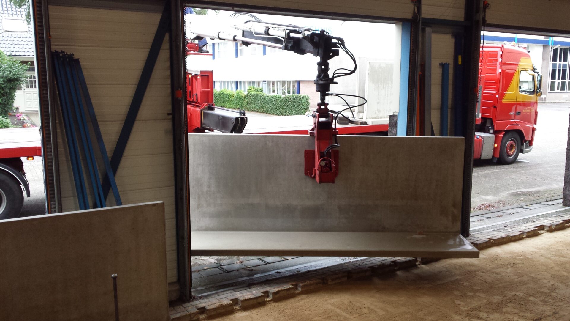 Het dock moest in totaal 120 cm opgehoogd worden met daarboven nog een beschermrand van 30 cm. Daarom heeft Pekkeriet gekozen voor onze L-keerwanden met hak van 150 cm hoog. We hebben deze keerwanden rechtstreeks vanaf de oplegger geplaatst onder de overheaddeuren door naar binnen.