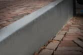 Voor deze toepassing heeft Van Dijk Infragroep onze radius keerwanden ingezet in combinatie met vaste hoekoplossingen en standaard rechte keerwanden van vier meter lang. De radius keerwanden vangen het hoogteverschil op en maken het geheel tot een dynamisch ontwerp. Na de succesvolle plaatsing van de wanden, zijn de keerwanden tot slot volledig in antraciet gespoten, in dezelfde kleur als de gevel.