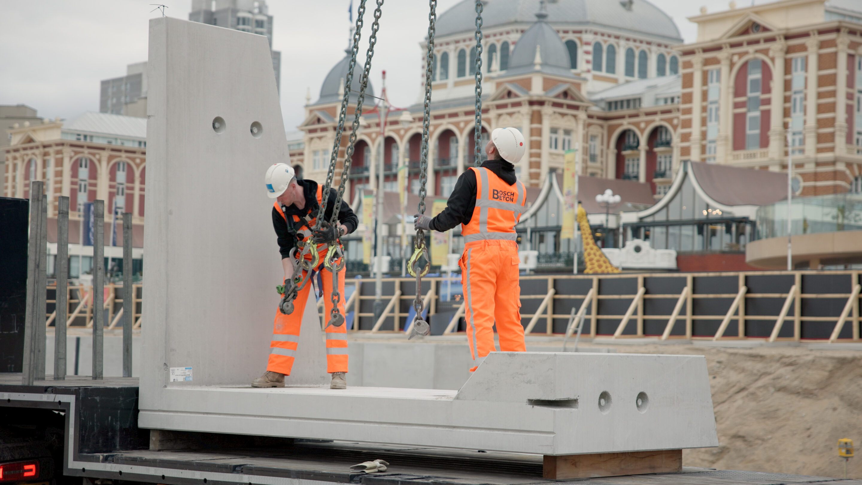 Enkele jaren geleden is Bosch Beton benaderd door Gemeente Den Haag om mee te denken over de vernieuwing van de Middenboulevard in Scheveningen. Afgelopen voorjaar is deze renovatie van start gegaan, waarbij gebruikt gemaakt is van speciale keerwanden van Bosch Beton om de oude zeewering te vervangen. Inmiddels zijn de laatste keerwanden geplaatst en gaat het werk verder op de boulevard.